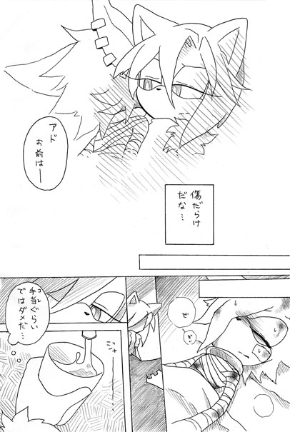 ついったで出た、アドくんが裏路地で暴行を受けて、それを助けたライアがアドくんのお家で手当てをする、というネタでした^o^ もう勢いだけで描いたのでいろんなところのミスは目をつぶってやってくださ…!>< 漫画なんか描けないのにたぎりのままやらかすから…うわん今度からはもうちょいちゃんと練ってから描きまする(´・ω・`) アドくんのお家ぜったいこんなんじゃない件ェ… 添え木とかしっかりと描きこめばよかったこれじゃまるでただ包帯巻いただけかのようry いろいろと言いたい事がありますが、それはついったで言いまする(なんで adriad死ぬほどたぎりますはぁはぁ大好きアドくん愛してる///////// 画像をクリックすれば文字が潰れないぐらいに大きく表示されますです