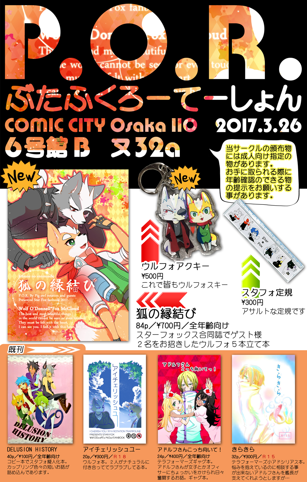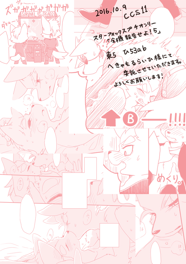 遠方でイベントに行く事が難しい方などにお使いいただけたら幸いです。 今のところ完売となってしまっている本に関しては再販は考えておりません。 ただ、再販ではなく何作品かまとめた再録本とかは出したいと思っていますのでどうぞよろしくお願いいたします。 今後は何か本やグッズを作った場合、イベント後にアリスブックス様に委託をお願いしていこうと思います! 【アイチェリッシュユー】 通販ページ http://alice-books.com/item/show/7256-1 ウルフォ本/R18 【零れ落ちるアルカディア】 通販ページ http://alice-books.com/item/show/7256-2 滝アキ本/R18 よろしくお願いいたします! クリックで大きく表示されます。 何がやばいって、こっちとあっち(ピクシブ)でアップしてる物がどこまで完了してるかがまたわからなくなっ以下略。 こっちでアップしてるのにピクシブではあっぷしてないのとかあったり、ピクシブにはあっぷしてるのにこっちにはアップしてないのとか混在しててすみません…もう何年言ってるかわからなくなったがもうちょっとアップした作品を管理しやすいサイトにお引っ越ししたい… 今は今年の秋に開催されるスタフォプチオンリー「全機報告せよ!5」 URL:http://sf.dojin.com/sfputi/ に、サークル参加したく、ウルフォ合同誌とウルフォ個人誌の原稿をやっとります。たのしー! 上の画像は合同誌のペン入れ前の原稿の一部 合同誌はこのままいけば確定ですが、個人誌は間に合うか微妙ではあはあする(息切れ) 追記7月3日: 上記で言っていたスタフォプチオンリー「全機報告せよ!5」ですが、イベント申し込みが予想外の早期受付終了してしまい参加できなくなりました。なので、別のケモノイベントに参加切りかえいたします。どのイベントに参加するかは確実に決定してからこのサイトに告知記事をのせるつもりです。 | カレンダー