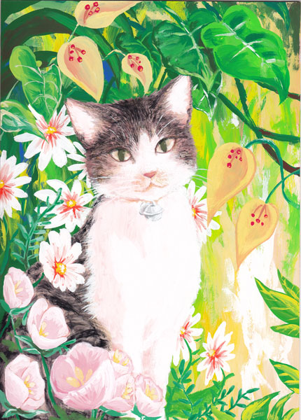 猫の寿命といわれる13歳を越して13歳8カ月でした。でも家族のだれもが、こんなに早くに天国へ駆けて行ってしまうとは思っていませんでした。いつも元気な様子に、甘えた行動、そして幼さが消えない顔。
